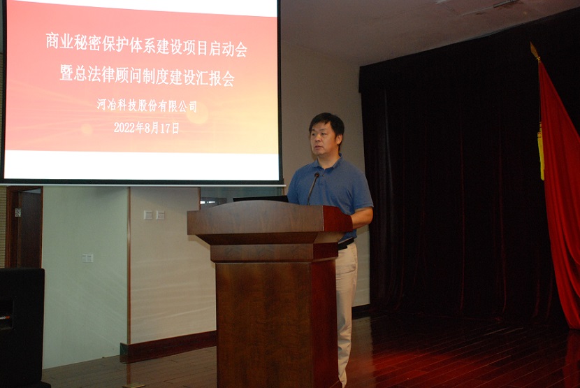 8月17日,河冶科技召開商業(yè)秘密保護(hù)體系建設(shè)項目啟動會暨總法律顧問制度建設(shè)匯報會在河冶多功能廳召開。安泰科技總法律顧問、商密總代表王勁東,河冶科技總經(jīng)理米永旺,河冶高管團(tuán)隊,安泰科技商密辦公室成員,河冶各部門商密代表及商密管理員參會。會議由河冶科技總法律顧問劉鵬杰主持。